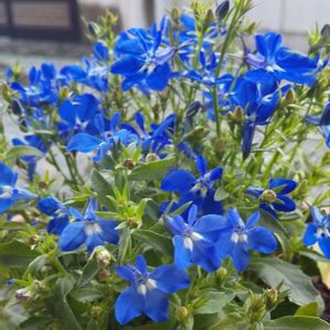 98円のロベニアを楽しむ ロベニアの後ろにはミックスフラワーからの苗が咲いた。