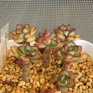 ハロウィン 🌟 アエオニウム属 リエールさんのカレンダーセットに入っていた子💕 曲がりに曲がっていたので、植えやすいところでカット✂️し、棒だけ植え付けていたものです。 忘れずにお水やりをしていたら赤ちゃんが3つも😆 暴れハロウィン 目指して頑張るぞ💓
