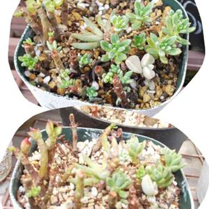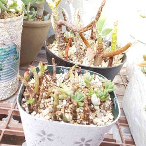 カットして 茎だけになった多肉だけを 集めて植えた鉢の1つ こうゆうのを観察するのも 楽しいもんだね 増殖できるかな〜