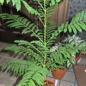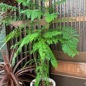 玄関の軒下に置いてるジャカランダ。 今年は外で頑張ってもらってます。 まだ葉っぱが付いてます😊