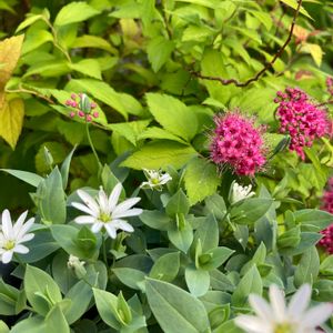 今日の庭の花は、 シコタンハコベ雪花火です。 小さい白い花がとても可愛いですよ❤️ 冬には地上部が 枯れてしまうけれど、 春になったら復活します。