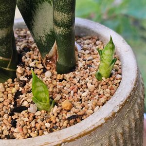 冬越し失敗したサンスベリア 三分割 頭の部分 葉の部分 根の部分 それぞれ再生してきました( •̀ᴗ•́ )و ̑̑ ちっちゃな新芽が可愛い〜💓