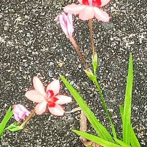 数日前から蕾になり今朝見ると、咲いていたので調べるとフリージアラクサ、和名は姫緋扇でした😍とってもたくましい雑草のようです👏広い庭ではないのによく育ってくれました😊