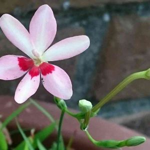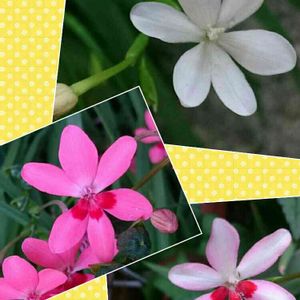 ヒメヒオウギアヤメ3色揃いました。 30年近く前に頂いた種は名前も知りませんでした。 蒔いた種はピンクだけでした。 そのうちお隣さんに赤の種を頂きました。 白は変化してそのまま毎年真っ白が咲きます。