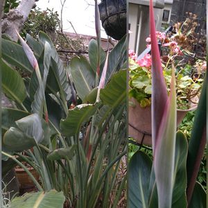 🍀ストレリチア・極楽鳥花🍀 12/22に左側の鉢植えを投稿しましたが 蕾たちは相変わらず開きません。😅💦💦 右側のは株分けした少し小さ目の鉢植えですが こちらの蕾は咲かなくても赤くてかわいいやん。💞 大寒波が来る前に咲いてほしいなぁ〜