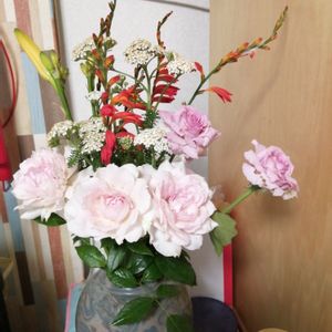 なんだこの背景って写真(:3_ヽ)_笑 梅雨の中 やっと蕾が開いてきたのにまた大雨の予報…!💦 平日朝にバタバタとカットして部屋に生けて、その色形が素敵〜💕と、保育園送迎前にパシャリした写真(笑) 薄暗いわ散らかってるわでお恥ずかしいですが(*´∀`) お花自体はすんごく美しい形してたので投稿しときます。
