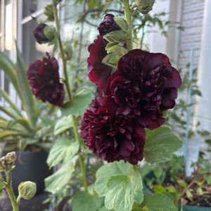 車の温度計によるとお昼前に35.5度を記録し、突然やってきた真夏についていけてません🌞💦 1.2 去年「今年咲きます」みたいなタグがついていたのに、水やりを失敗したのか咲かなかったタチアオイが今年ついに開花ヽ(´▽`)/カッコ良すぎませんか??タグにはパープルと書かれていますが、黒よりの赤というのか赤よりの黒というのか、とにかく大人色です🖤 3.クレマチス流星。我が家に2株ある流星、うち1株は既に切り戻したのですが、こちらは陽当たりが悪い方の株。バラの近くに植えてあるのですが、今年は見事に開花期がズレました…涼しげに咲いてます。 4.アメリカ藤アメジストフォール。2番花が咲いてきました。 5.スーパートレニアカタリーナ アメジスト こんもり育てたいけど、放置していたらラフに垂れてきてこれはこれで好きかも💙