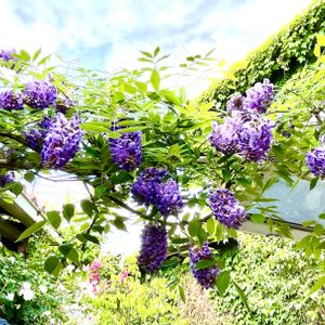 今日はお天気☀️ 自宅を一般公開されているお宅に来ました🚶♀️🚶♀️🚶♀️ 藤の花みたいだけどブドウの房みたいな花が沢山咲いています🍇🍇🍇 とっても良い香りです🎶 ここは薔薇園のようなのに1番最初に違う花をUPしちゃう私🤣