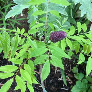 散歩の途中で見つけました🐕 💜色が綺麗です つる状のものが見えます💜 ニワフジでしょうか❓ ハリエンジュ(ニセアカシア)でしょうか 💜アメリカアメジストフォールのようです