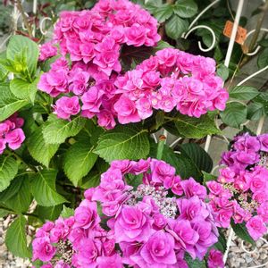 紫陽花挿し木っ子 鉢植え 歌姫🎤 ベレナ💜 真ん中は勝手に名付けるなら 「てまり紅」小輪デス💗 伊予獅子手毬🌸 サマークラッシュ🏖 伊予ちゃん以外は地植え親株がありますが鉢植えの方が色づき早いです❣