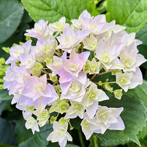 今朝はすごい雨☔でした。 お昼には止みましたが、凄くムシムシ…。 我が家のあじさい。 ラグランジアシリーズ「クリスタルヴェール2」が咲きました。 ちょっと暴れた感じです🤣。かと言って飛び出た枝をカット✂️する勇気もありません😮💨 玄関前には「ブライダルシャワー」を。 野の花を摘んできたようなナチュラルな感じが素敵🩷 室内の「クレイジーテンシア」。 ヒラヒラの大きなお花や小さなお花…。混ざり合ってふんわり可愛い🩷