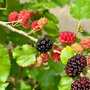 おはようございます。 今日は暑くなりそうです💦 庭パト中のおやつマルベリー「シャルロットリュス」。 黒くなった果実から頂きます。 そして同時に桑にとって恐ろしい桑菌核病のチェックも怠りません‼️ おまけ。 山紫陽花の伊予獅子手まり。 青く咲いてきました😌