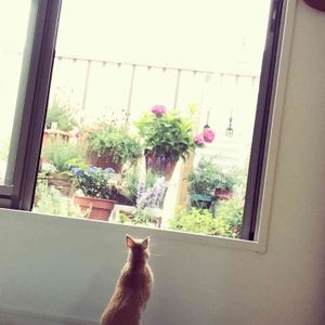 ちょっと日が射して来ましたねー🎶 ベランダの様子を伺ううちの可愛子ちゃん💕