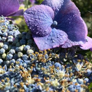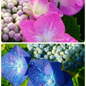 朝露の残っているあじさい、朝日に輝いてます✨💕🤩
