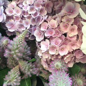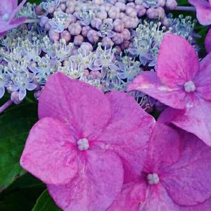 このちょいちょいピンクが入る感じがたまらなく可愛い😍 紅テマリと似てるけどヤマアジサイではなさそうなので品種が気になる〜🤔 分かる方いらっしゃるかなー?