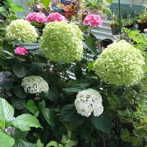 ビックアナベルが緑になってきたー😍 もうちょいしたはドライにしよ〜かなぁーでもこんなに立派になって切るのためらう〜😣