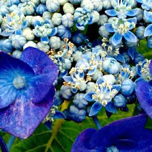 美し過ぎるね✨💙我が家のガクアジサイ💙 土砂降りだけど 久々の恵みの雨☔