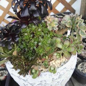 今までアエオニウムは一鉢ずつ育ててたのだけど、今回からまとめて植え付け 一個づつ植え替えるのが面倒だったからなんだけどね😁 まとめ植えしたので棚にスペースができた~\(^-^)/