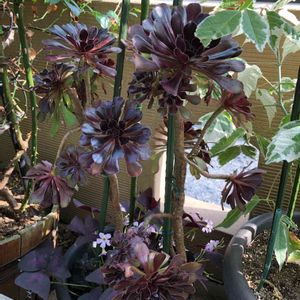 寒いけど良いお天気なのでベランダ検分😊 黒法師が生き生きしてる。 アエオニウムたちは寒い季節は成長期なんですよね。 夏は息も絶え絶えで葉っぱもちっさくなっちゃうけど、秋以降はメキメキ元気になる。 東京は冬でもしばらくお外で大丈夫そうかな。 カナリエンシスも夕映えも今は絶好調。酷暑の時は一時はどうなるかと😅 この子はお迎えして3年目になるわ。