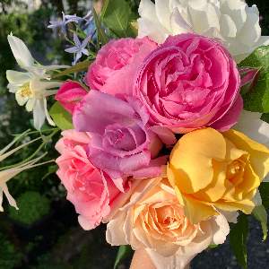 こんばんは🐰🌟 ①は、ヤマアジサイ ブルー🩵のガクが綺麗です。 ②は、キキョウ ③は、寄せ植えになってます😊 ④⑤は、今日の花アヤメ 今日も暑かったですね〜🥵 紫陽花が日焼けしてる所が有ります😥 体調には充分気をつけてね😊
