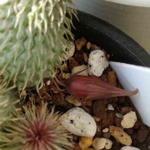 先日の阿修羅よりコロンとしたほうの阿修羅にも花が咲きました🌼🤗 こちらのお花のほうが色薄め アップで見るとキモカワさん😅🌼