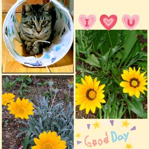 再投稿失礼します🙏😃 ひもが命のトラたん 絶対離さないニャ~❤️ 宿根ガザニアが元気いっぱい咲いてきました🌺🧡