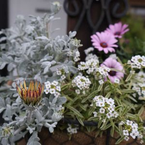 ハンギングの寄せ植え 明日も明後日も30度位の予報🫠 暑い強い子たちを選んでみたつもりですが、うまく過ごせるかな?