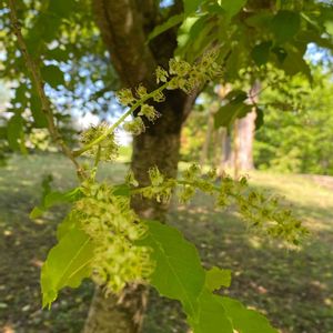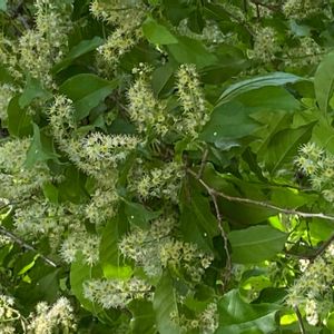 5月30日撮影 県営公園その2 29日に行った公園から歩いて行くこともできる公園です。ここも元米軍基地。 4月に加治丘陵でウワミズザクラを見たときに、ここにイヌザクラがあったことを思い出したのですが、 ちょっと来るのが遅かったので、花がもう終わって実になってしまっていました。 4月のウワミズザクラも、説明を聞きながらで近くに寄って撮る余裕がなかったのですが、今度はどちらも花の時期に近くで撮影して比べられると良いなって思いました。 イヌザクラ(犬桜) バラ科ウワミズザクラ属 ・本州、四国及び九州に分布するサクラの仲間。沢沿いの樹林や里山に多く、4月~5月にかけて白い穂状の花を咲かせる。 ・葉は長さ5~10センチほどの長楕円形で、枝から互い違いに生じる。先端が尖り、縁には波状の浅いギザギザがあるが、ウワミズザクラの葉の縁にあるような三角形の鋭い棘状のものはない。また、ウワミズザクラに比べると葉の幅は狭く、もっと広い箇所は葉の中心より上方であり楔形に近い。 ・開花は葉の展開とほぼ同時。前年に伸びた枝から長さ10センチほどの穂状の花序(花の集り)に、直径5~7ミリの小さな五弁花がまばらに咲く。小花の中央には雌しべが1本あり、それを12~20本の雄しべが囲むが、雄しべは花弁の外側に突き出すほど長い。 ・ウワミズザクラとの違いは、花穂の軸の下部に葉っぱがないこと、花がまばらであること、花の中心部が黄色っぽく、全体に小ぶりであること。また開花期はウワミズザクラよりやや遅い。 ・花の後にできる果実は円形に近く、黄色、赤、黒紫色へと変化し、7~9月に熟すが、苦みがあって食用になりにくい。ウワミズザクラの萼片は雄しべと共に落下するが、イヌザクラの萼片は果実が熟しても残っている。 (庭木図鑑 植木ペディア より)