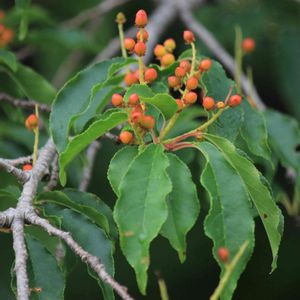 【われら樹木探検隊】 🌿イヌザクラ🌿犬桜 直径8ミリほどのイヌザクラの果実です🟡🟠🔴 花期も花もよく似たウワミズザクラ(7/30投稿)の果実とよく似ていますが、いくつか違いがあります。 * 花序は前年枝の節から出る (ウワミズザクラは新枝の先から) 🔹花序の軸に葉はつかない (ウワミズザクラは下部に3〜5個つく) 🔸萼片が花後落ちず果期にも残る (ウワミズザクラは残らない) *果実は苦味が強い (ウワミズザクラは食べられる) ウワミズザクラの果実はほとんど残っていなかったのに、イヌザクラはいっぱいついていて驚きました😳🔴🟠🟡 その小さな果実をカラスがついばんでいる姿はちょっと滑稽でした😆😄 2022.7.18撮影