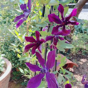 クレマチスビギナーなのに こんなに狩ってしまいました 娘とクレマチスナーセリーに行き 誕生日だったしクレマチス好きの娘につられて4種類も😱 小庭のどこに植えるの?鉢植え🪴? 夫に呆れられそうなので部屋で待機中