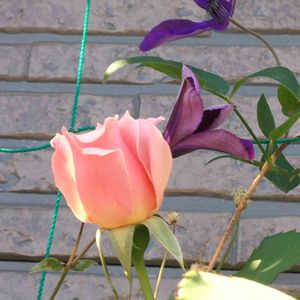 おはようございます。 picのバラは御近所の花友さんからいただいたミニバラで、紫色の蕾はクレマチス【アフロディーテ エレガフミナ】です。 【アフロディーテ エレガフミナ】との出会いは、GSのくまマダムさんの素敵なpicで、2020年5月16日から我が家の一員になりました。