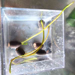 茶碗ハスとやらを100均金魚鉢に投入😊 1週間でヒョロヒョロと伸びて来た🔎 コレって土いる❓のかなぁ❓🤔 根っこ出てから考えよう🙄