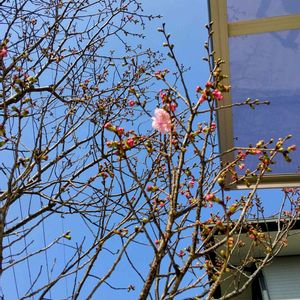 家の桜がちらほら咲き始めました。 陽光桜🌸でピンク色の綺麗な花が たくさん咲きます💗 今年はゆっくりでいいから 長く咲いていて欲しいです。