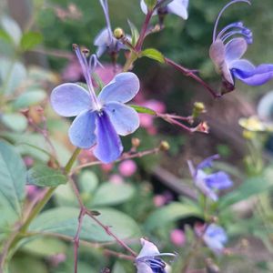 🍀おはようございます🍀 ブルーウィング💙💜 気温が下がり色濃くなりました😊 ③④1枚目のバックに写り込んだ ピンクの小菊も 満開の枝やまだ蕾の枝があり 長く楽しんでいます♬ ⑤レウコフィラムもまた 咲き始めています(・∀・)