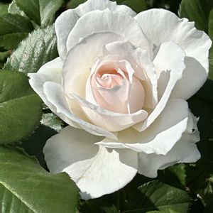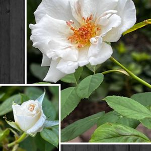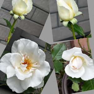 🏷️ 月曜日にはバラを 🏷️ やっぱり白花 参加させて頂きます 去年秋に買った小さなバラの苗 一輪咲きました マーガレットメリル 四季咲き 中輪 かほりが良く切り花向きだそうです 開くと金色の雄蕊が (忘備録として)