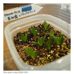 One plant a day. Haworthia 黒初霜 × ‘Black Obtusa’ 2020/06/13 seedling 初めて交配に成功したオリジナルハイブリッド😉全然形の違う交配なので、どんな感じになるか楽しみです🥰それにしても半年でこの大きさ😅大きくなるのに何年かかるのか😂