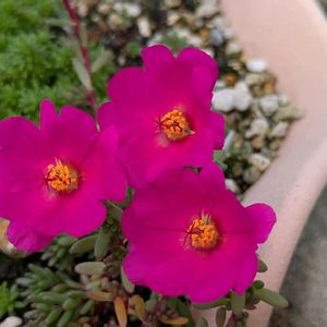やはりこう言う色のお花は元気がもらえる感じですよね😊 セダムのピンキーさん 葉っぱは小さいですがお花は大きいく元気一杯🥰 風雨で葉っぱの所落ちるのがありますが それから根っ子出して増えてくれます😊 この株もそうです🙂 因みに雨ざらしです😊