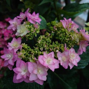 アジサイ「シャンデリア」 この子もまだ染まり始めたばかり。 楽しみな子です。 咲いたら「シャンデリア」と 「シンデレラ」と「ダンスパーティー」 並べて写真撮ろうっと。 どこかに「カボチャ」ってアジサイ無いですか?