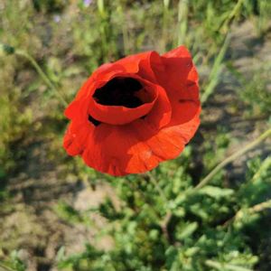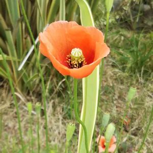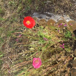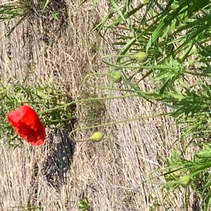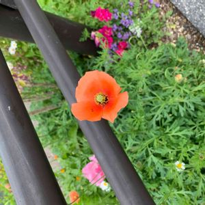 散歩のコースを変えてみましたら、跨線橋にポピーが、綺麗な花を咲かせていました。