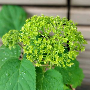 ☂️雨あがりの紫陽花たち ①アナベル降臨👼✨️! 明るい緑色が眩しい😆。 ②隅田の花火🎆蕾も花火チック🩷 何色何色?((o(´∀`)o))ワクワク ③母の日のカーネーションがまだ綺麗です。 いただいたスターチスと。