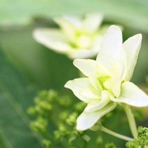 紫陽花 隅田の花火 白花八重咲きのガクアジサイ