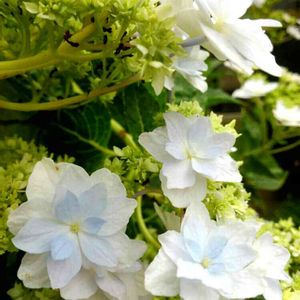 今日はこちら関東でもガッツリ雨が降っています☔️西のほう、雨が降り続き、心配ですね💦💦 あじさいコンテスト、滑り込みで✨✨ 地植えで10年頑張っている庭のあじさいです。たぶん隅田の花火だと思います。 今はステキなあじさいがたくさん出てきて、なんだか地味な感じすらしてしまいますが、清楚でかわいいです😊😊 年々水色っぽくなってきているような…✨ 大きな柏葉アジサイに負けないようにどんどん大きくなって頑張っています😅😅