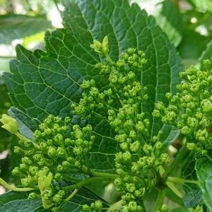 挿し木で育てた紫陽花🌿隅田の花火🎆 飾り花🌼が上がってきました✨ 親株は移植のダメージが大きかったようで 駄目になりそうです💧 現在純白ですが咲き進んでくると 薄っすら色付きます🌺