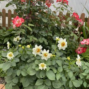 ミニダリアが沢山咲いてくれています...ところどころに穴🕳️ありますが.,, オレガノ ケントビューティー デックタムナス 色濃くなってます