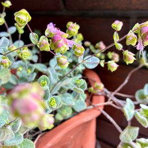 オレガノたちが可愛い姿になってきています😊🩷 それぞれ似ているようでちょっと違う姿が可愛らしい𓂃𓂂𖡼.𖤣𖥧𓈒◌܀ オレガノ ディクタムナス↗はまだお花は咲いてないようですが、花びらのように見えるガクの色付きは早いです💕