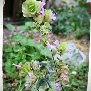オレガノ “ディクタムナス”🍃💚✨ Origanum dictamnus ライムグリーンの萼から、ひょこっと 小海老のような…🦞🍃🙄 いや違う、妖精のような…🧚🌵🤭ww お花が出て来ました😘💚 この雰囲気♡ 清涼感があって 癒されます.。*♡ 花後はいつも、ドライフラワーにして 部屋でも楽しみます✨