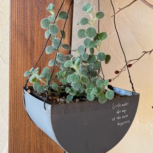 花束のように植える 室内鑑賞用に観葉植物のプリコラージュの 4回目のレッスンをしてきましたー! アンスリウムを中心に大人シックにしました😍 🌷シンゴニウム 🪴アンスリウム 🪴オレガノ ディクタムナス 🪴ワックスアイビー クライミングセネシオ 🪴ペペロミア プテオラータ 🪴アジアンタム などなど 室内で鑑賞できるので🔍🌱👀💕 家の2階のスペースに置いて、 毎日ニヤニヤしてます😍 植物好きな人はわかると思いますが、 可愛くて植物はずっーと見てられる❣️ ペペロミアの葉もスイカみたいに縦じまなのも可愛い😍 アジアンタムは、すきなんだけど、 水やりのタイミングとか室温とか手入れが難しそうでわざと遠ざけてました😅 今後チリチリにならないように観察していこうと思います。 アジアンタムの手入れでコツがあれば教えてください🙏