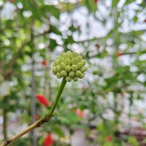 シロバナオオベニゴウカン🤍🌿💚 ①〜⑤ つぼみ〜満開まで同じ鉢から出てました😉👍 すごいったっくさん👏
