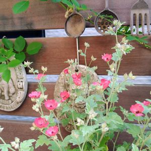 ❀❀スファエラルケア/ニューリーズコーラル❀❀ 》1枚目から3枚目 アオイ科の宿根草です。 小型のホーリーホックみたいなお花 マロウを小さくした感じ コーラルピンクの小花とシルバーグリーンの葉っぱ🌿がきれいです✨ 》4枚目 スカビオサスクープ🩷 無事に開花♡ たくさん折れましたけど~玄関角にもたれかかって咲いてました^^; 》5枚目 クレロデンドロム 青い蝶々♡♡ 裏から見たら素敵でした( ꈍᴗꈍ)♡♡