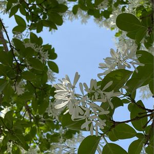 お買い物の帰り、青空に映えるヒトツバタゴを発見🍀‼️ ヒトツバタゴの白い花を見かけると、今年もGWが近づいてきたな、と感じます🍀 😊 青い空に雪のようなお花☺️ 連休にはいつもの公園で、のんびりと青と白の美しいコラボを眺めたいです✨🍀✨💕😊